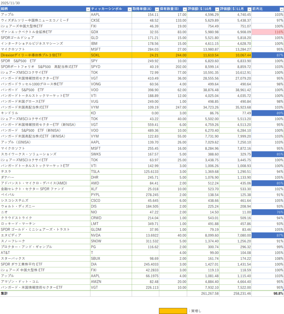 2025年11月の資産公開|年末ラリーへ視界良好?資産総額は減少!