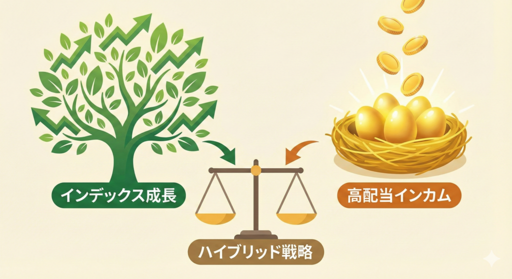 理論上の正解(インデックス)をコアに据えつつ、心の正解(高配当)で脇を固める。 この「いいとこ取り」のハイブリッド戦略こそが、私にとっての「持続可能な投資」の答えなのです。